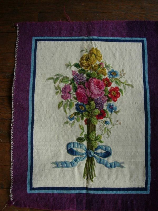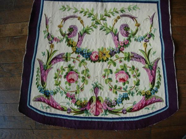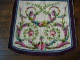 Fond blanc, dehors violet à ornements polychromes en arabesques avec bouquet composé de roses, lilas, bleuets et volubilis.(2007)