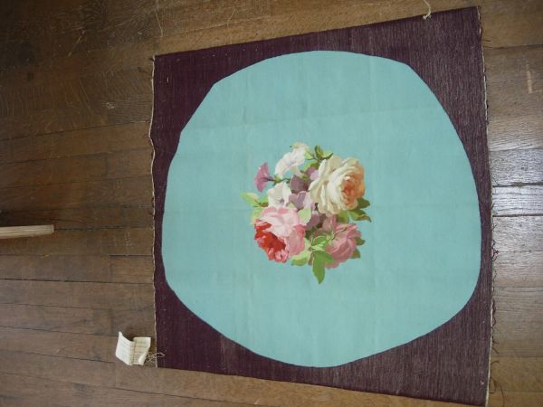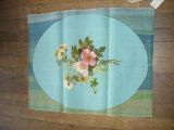 Sur la première se détache, sur un fond bleu clair, un bouquet de fleurs et une couronne de petites feuilles tandis que sur ces deux derniers, un bouquet de fleurs se détache sur un fond bleu clair.