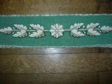 52 plates bandes. Fleurs blanches sur fond de laine verte.
