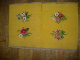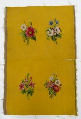 Décor : sur fond jaune, 2 bouquets de fleurs l'un à côté de l'autre.