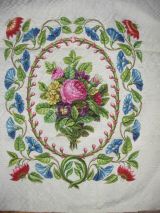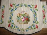 Panier de fleurs, rosaces et guirlandes fond blanc.Vu en avril 2011.
