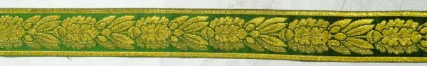 - Bordure brocart or, fond satin vert, frise de feuilles de chênes et glands alternés avec des feuilles de laurier.