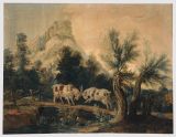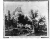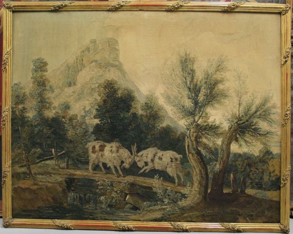 Panneau en tapisserie de Beauvais. Terminé en 1814. D'après tableau de JB Oudry, 1747, illustrant la fable des deux chèvres de La Fontaine.
