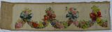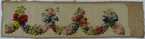 Guirlandes de fleurs, liées par des nœuds de couleurs (deux rouges et deux bleus), sur fond blanc.