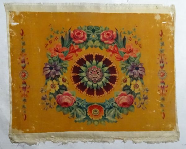 Ces étoffes sont représentatives du procédé élaboré par Gaspard Grégoire à la fin du XVIIIe siècle, pour la fabrication de tableaux et portraits en velours de soie coupé et peint sur chaîne. Les dimensions des laizes, contraintes par la technique, ne dépassent pas 40 à 50 cm de côté. D'après le livre d'inventaire, le meuble GMMP 773 serait sans doute issu d'un procédé d'impression sur velours plutôt que de peinture à proprement parler.