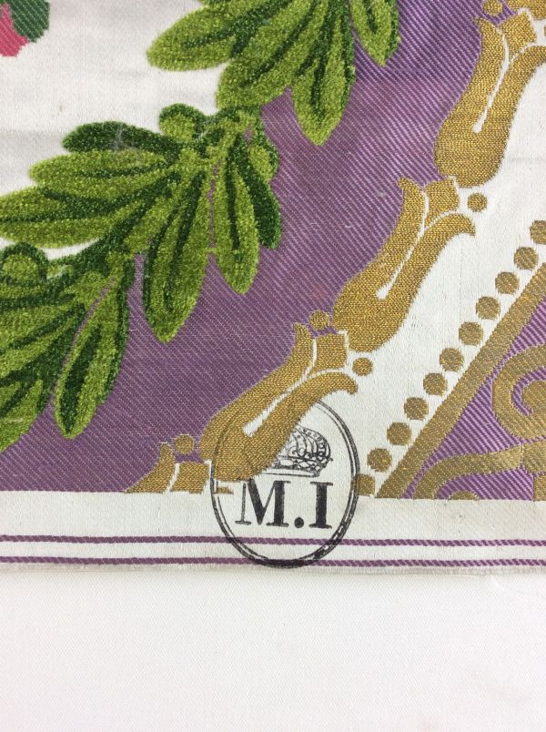 Textile destiné à la chambre à coucher de l'Empereur au Palais de Versailles. En 1821, les étoffes étaient toujours dans les magasins du Garde-Meuble.