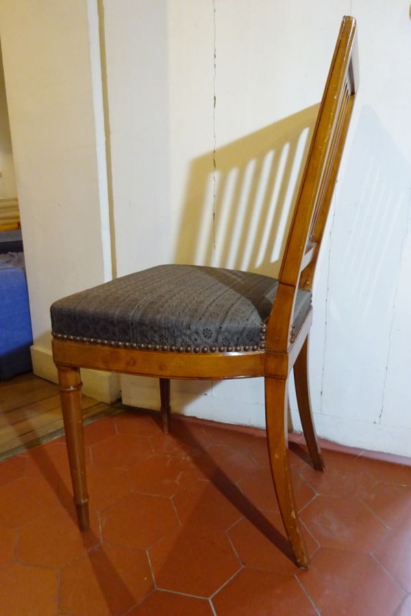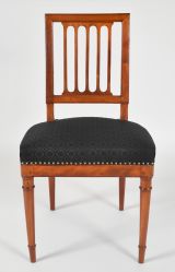 Chaise exécutée par Georges (I) Jacob (1735-1814), menuisier-ébéniste, reçu maître à Paris en 1765 et actif en son nom propre jusqu’en 1796.