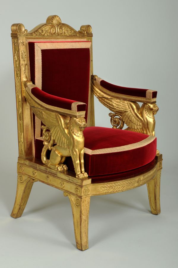 Pour les salles du trône des deux palais des Tuileries et de Saint-Cloud, l'empereur avait commandé un mobilier identique, comprenant six fauteuils pour les princes, six chaises pour les princesses et trente-six "tabourets ployants".