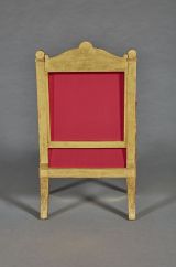1833 : velours de soie cramoisi, galon or mi-fin cablé or, clous dorés, le derrière du dossier en taffetas cramoisi.