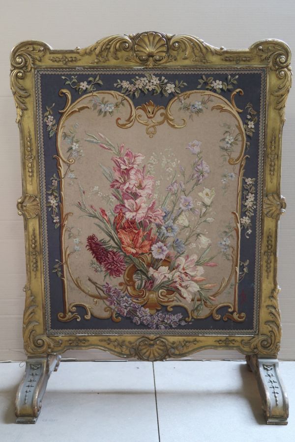 Bois doré sculpté 2 faces et tapisserie d'Aubusson..