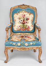 Doré par Mars et couvert dès sa fabrication du meuble n° 15 de la manufacture de Beauvais, "Fleurs, style Louis XV", d'après Chabal-Dussurgey.