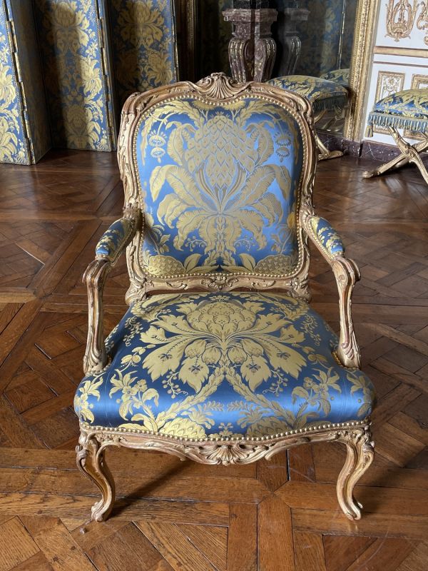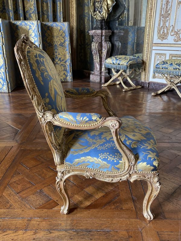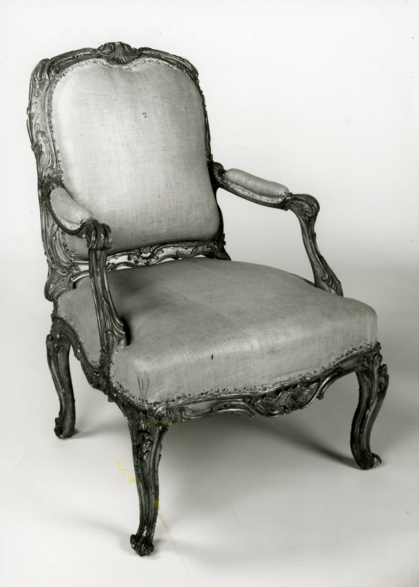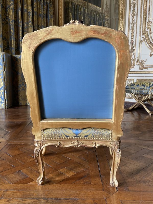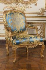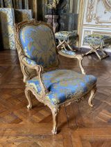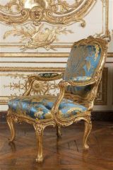 Fauteuil d'une suite de huit commandée par la marquise de Pompadour pour le salon d'assemblée de son château de Crécy, acquis en 1746.