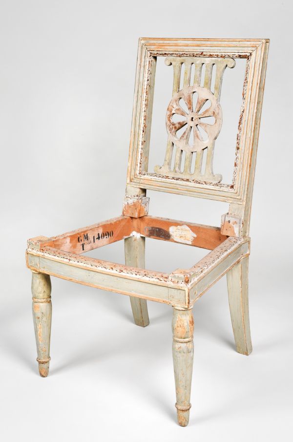 GMT 14090 (encadré) / chaise à grille bois peint / faux bois. Pieds Tournés / Jacob D rue Meslée