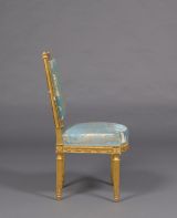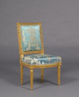Chaise d'époque Louis XVI en bois doré, estampillé "G. Iacob" (avec une fleur de lys entre le G et Iacob).