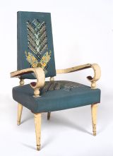 Décorateur à la production abondante et variée, actif des années 1930 aux années 1980, Maxime Old (1910-1991) fut qualifié de « trait d’union entre la grande époque des décorateurs et les temps modernes » (Y. Badetz). Le Mobilier national lui passa des commandes nombreuses et régulières entre 1941 et 1955 : plus de 180 meubles dessinés par lui sont inscrits à ses inventaires. Pendant la période de la guerre, les meubles de style Empire ou Louis XVI alternent avec des réalisations plus originales (GME 9355 et suiv., GME 9832, GME 9917) et deux ensembles en tapisserie (GMT 14315 et suiv. ; GMT 15116).