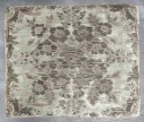 1950 : soierie bleu pâle, brodée argent, gros bouquet fleuri en rosace.