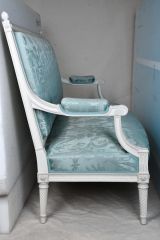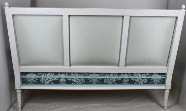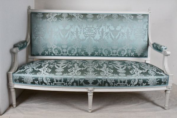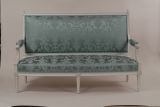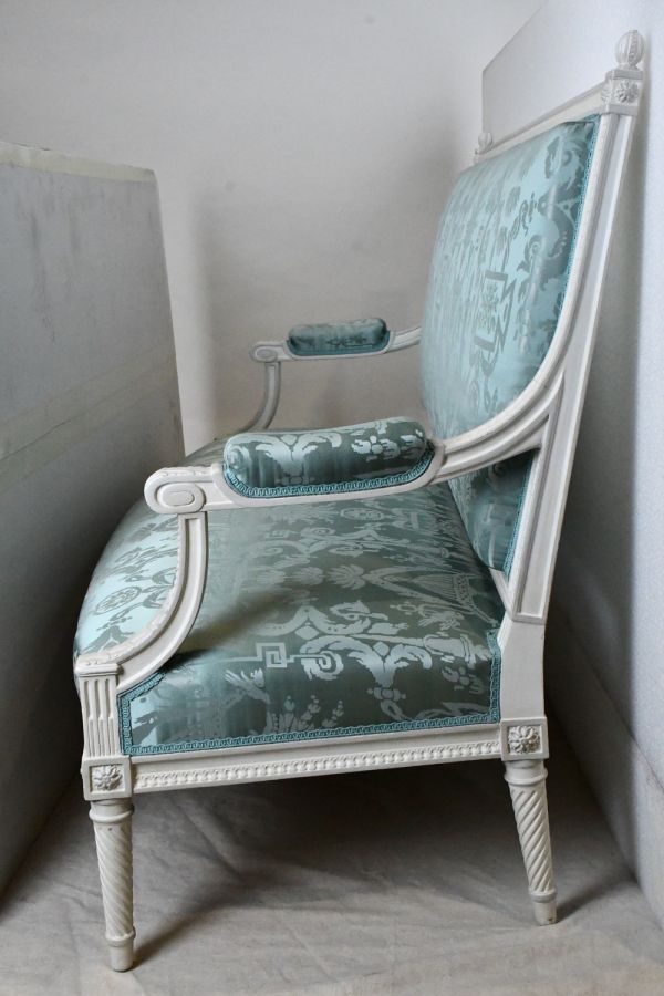 Canapé trois places de style Louis XVI en bois de hêtre peint.
