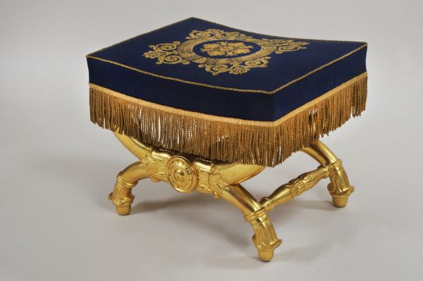 D'une suite de dix-huit pliants décrite en 1833 au palais des Tuileries, au premier étage du pavillon de Marsan, dans le salon des huissiers du duc de Nemours (AN, AJ/19/170, f° 217v°, n° 2733).