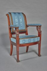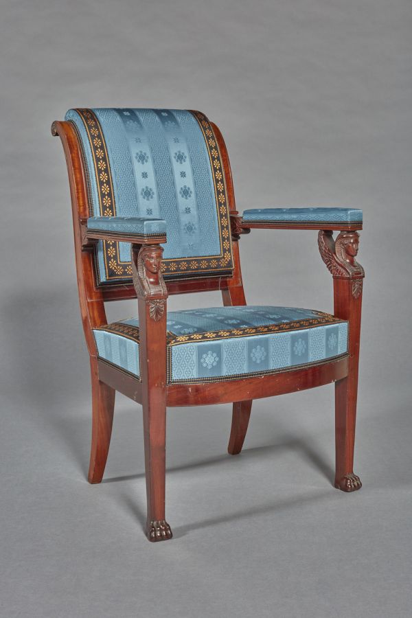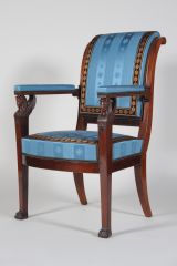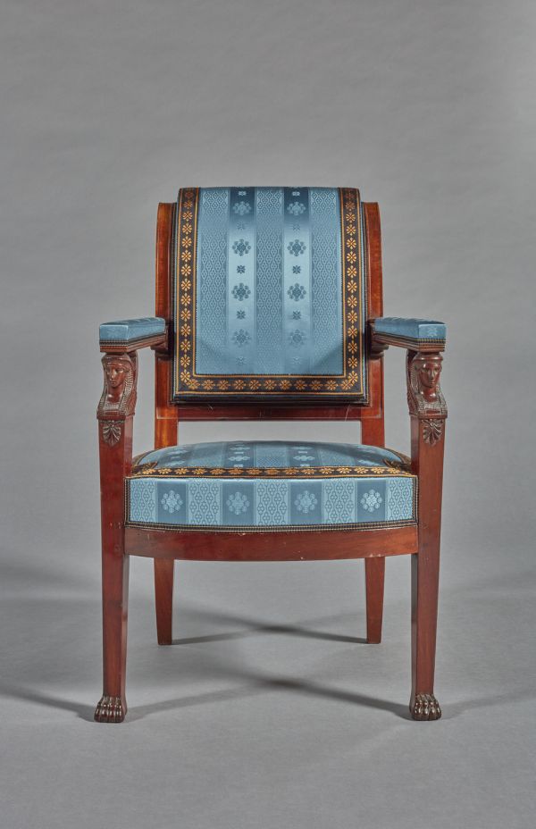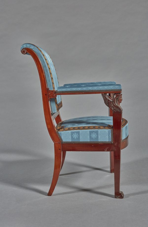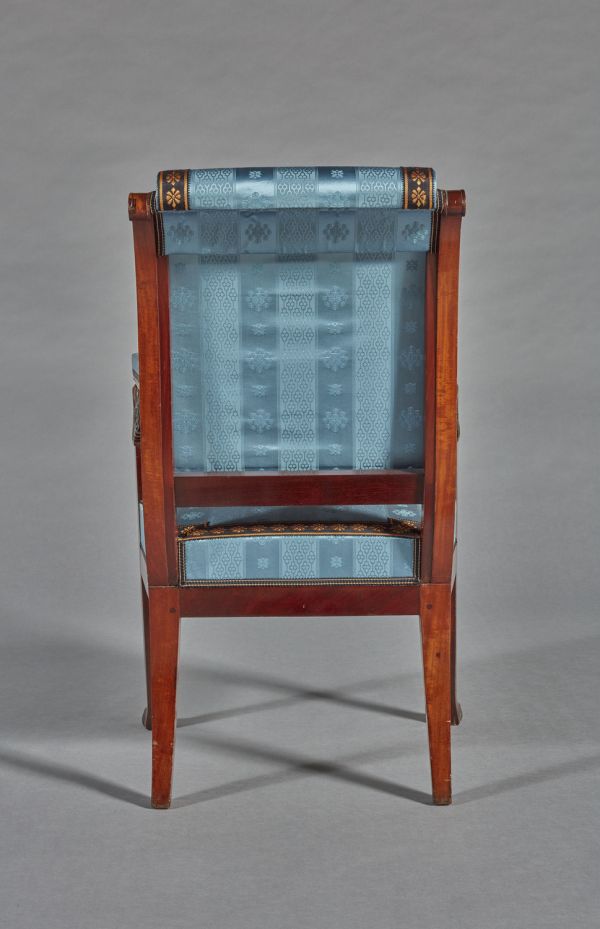 Fauteuil exécuté par la société « Jacob Frères », association de Georges (II) Jacob (1768-1803) et de son frère, François-Honoré-Georges Jacob (1770-1841), menuisiers-ébénistes, active de 1796 à 1803.