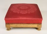 Tabouret de pieds exécuté par Denis-François Frémancourt, marchand tapissier à Paris, fournisseur de sièges pour le Garde-meuble entre 1811 et 1830 environ.