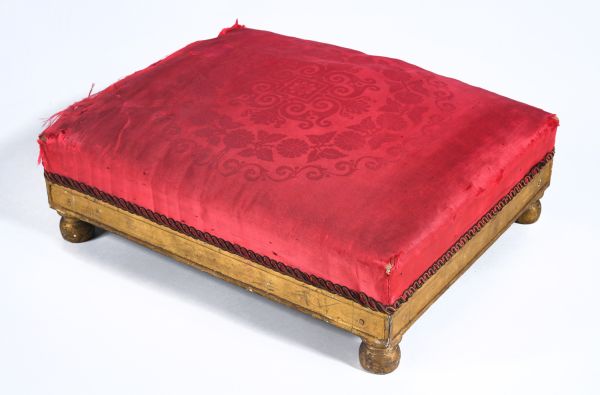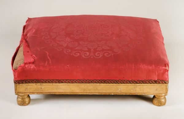Tabouret de pieds exécuté par Denis-François Frémancourt, marchand tapissier à Paris, fournisseur de sièges pour le Garde-meuble entre 1811 et 1830 environ.