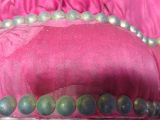 Couvert de damas rouge. Galon clouté.