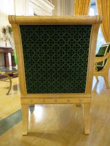 1820 : cannetillé vert, double encadrement bordure brocart vert et or, une seule au dossier.