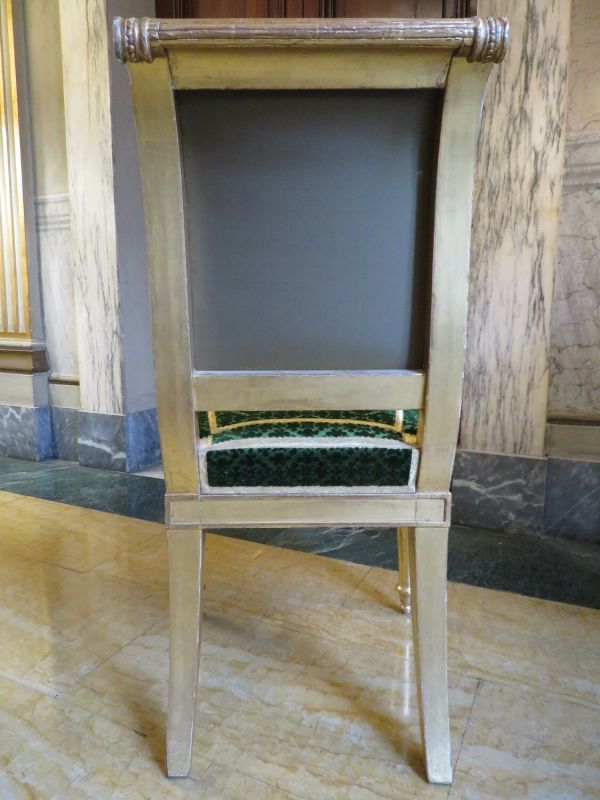 Chaise exécutée par la société « Jacob Desmalter et Cie », association de François-Honoré-Georges Jacob, dit Jacob-Desmalter (1770-1841), et de son père Georges (I) Jacob (1739-1814), menuisiers-ébénistes, active de 1803 à 1813.