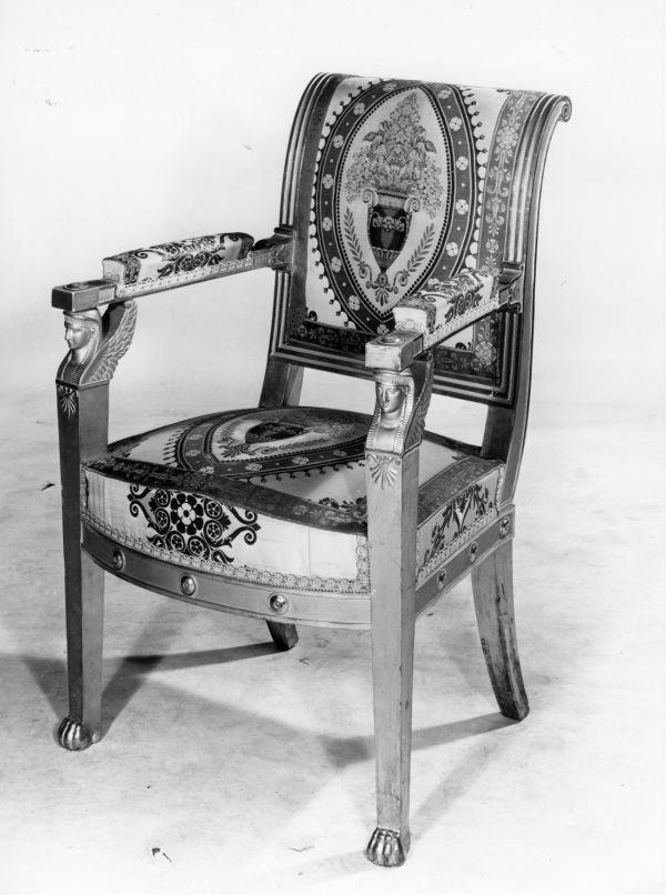Fauteuil attribué à la société « Jacob Frères », association de Georges (II) Jacob (1768-1803) et de son frère, François-Honoré-Georges Jacob (1770-1841), menuisiers-ébénistes, active de 1796 à 1803.
