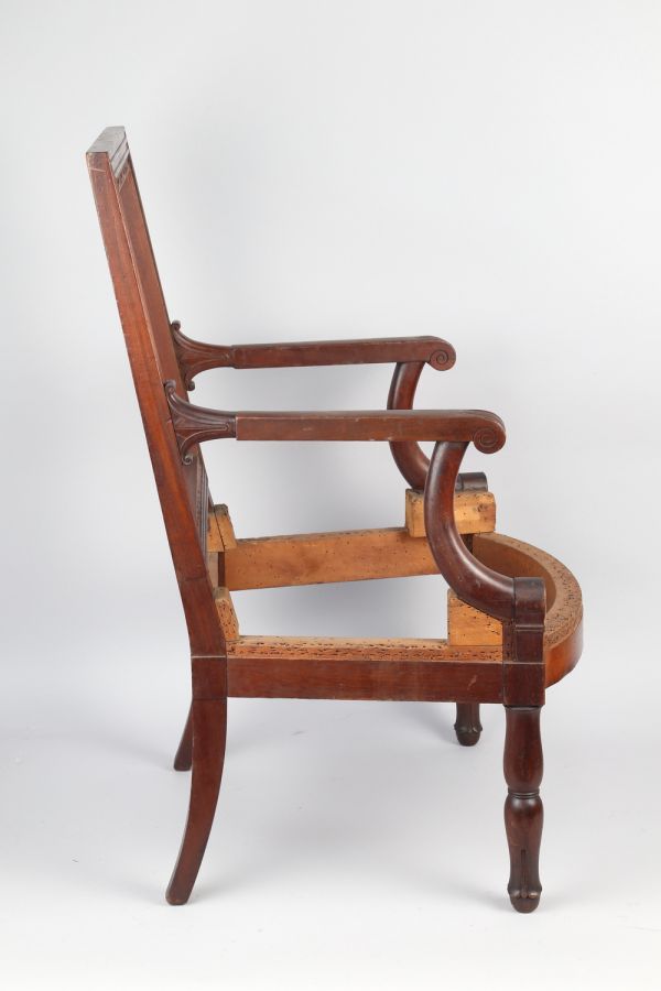 Fauteuil exécuté au début du XIXe siècle par Louis-Charles-François Menant, menuisier actif à Paris de 1793 à 1824.