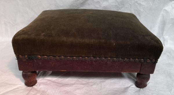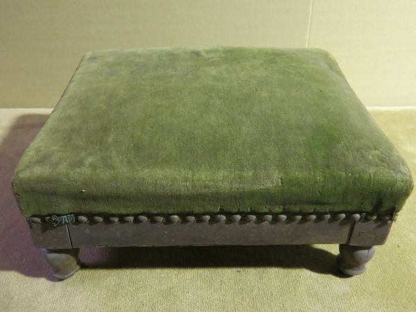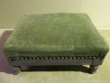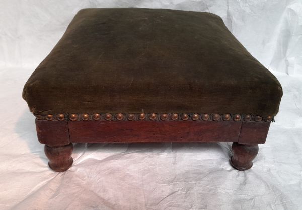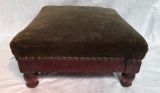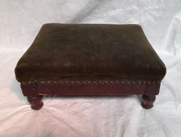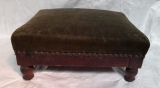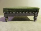 Tabouret de pieds en acajou, garni de velours vert. Quatre pieds tournés.