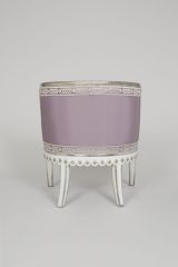 1974 : coussin à épaisseur, faille lilas avec application bordure et galon lilas et argent (GMMP 20713).