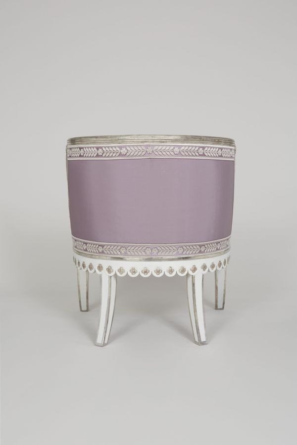 Décrit en 1808, dans le boudoir des petits appartements, au rez-de-chaussée de l'aile est, demeuré jusqu'à aujourd'hui le boudoir d'argent (AN, O/2/721, f° 6 v°, s.n.) ; en 1809, dans la même pièce, appelée le boudoir d'argent (AN, O/2/705, f° 87 v°, n° 314) - l'ensemble des meubles de menuiserie comprend deux "pommiers" (n° 313), quatre bergères gondoles (n° 314) et deux chaises (n° 315) ; en 1813, dans la même pièce (AN, AJ/19/92, n.p., s.n.) ; en 1817, dans la même pièce (AN, AJ/19/78 et AN, O/3/2024) ; en 1820, dans la même pièce (AN, AJ/19/83, f° 52 v°, n° 339) - l'ensemble des meubles de menuiserie comprend deux "pommiers" (n° 336), quatre bergères gondoles (n° 339) et deux chaises (n° 340) ; en 1833, dans la même pièce (AN, AJ/19/86, f° 61 v°, n° 349) - l'ensemble des meubles de menuiserie comprend deux "pommiers" (n° 346), quatre bergères gondoles (n° 349) et deux chaises (n° 351) ; en 1848, dans la même pièce (EB 389, inventaire perdu) ; en 1855, dans la même pièce (AN, AJ/19/90, f° 42 v°, n° 156) - l'ensemble des meubles de menuiserie comprend deux "paumiers" (n° 155), quatre fauteuils gondoles (n° 156) et deux chaises (n° 157).
