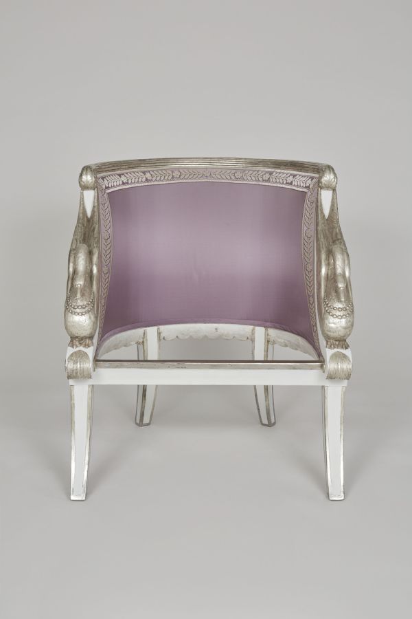 Fauteuil exécutée par la société « Jacob Desmalter et Cie », association de François-Honoré-Georges Jacob, dit Jacob-Desmalter (1770-1841), et de son père Georges (I) Jacob (1739-1814), menuisiers-ébénistes, active de 1803 à 1813.