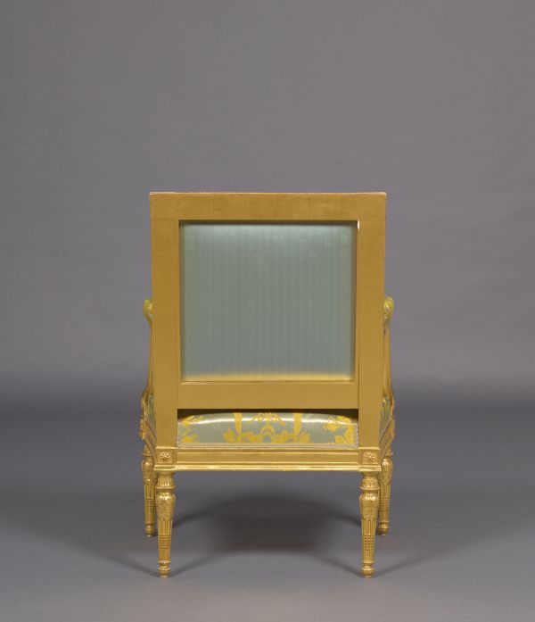 En juillet 1791, l'ensemble est envoyé dans le grand cabinet de Marie-Antoinette au palais des Tuileries (marque au fer) et complété par deux demi-canapés, deux tabourets et une chaise haute commandés à Jean-Baptiste-Claude Sené (1747-1803).