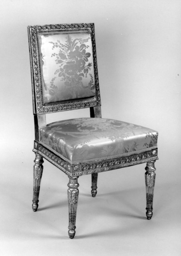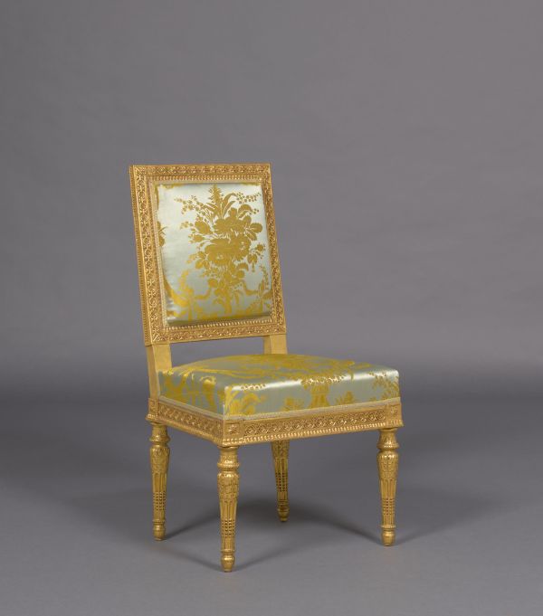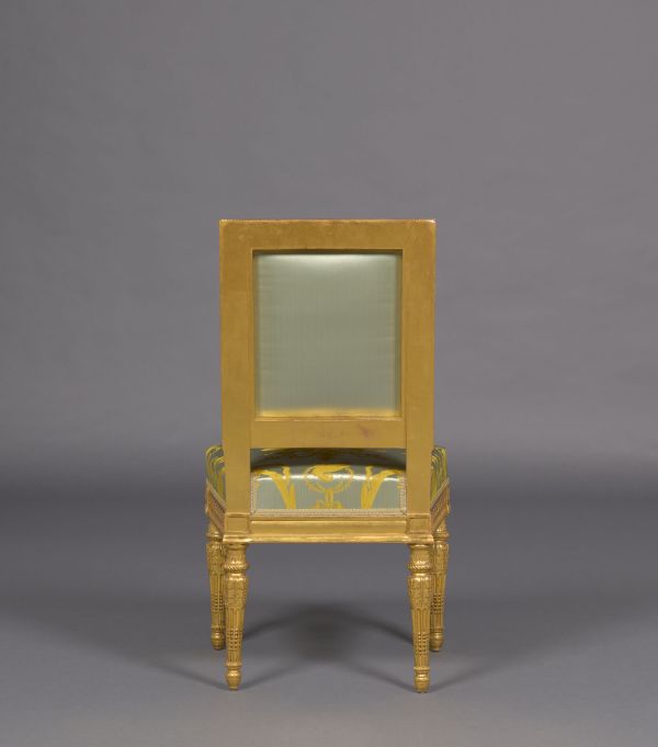 Chaise exécutée en 1806 par Benoît-François Boulard (1766-1846), maître-menuisier à Paris, sculpté par Rode et doré par Louis-François Chatard (vers 1749-1819), par copie du meuble Vaudreuil, exécuté vers 1784 et attribué à Georges (I) Jacob (1735-1814).