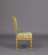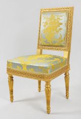 Chaise à la reine de style Louis XVI en bois doré.