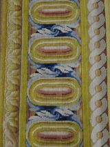 Bordure d'oves allongées or à coeur rose serties acanthes bleues et entre moulure or ciselées entrelacs.