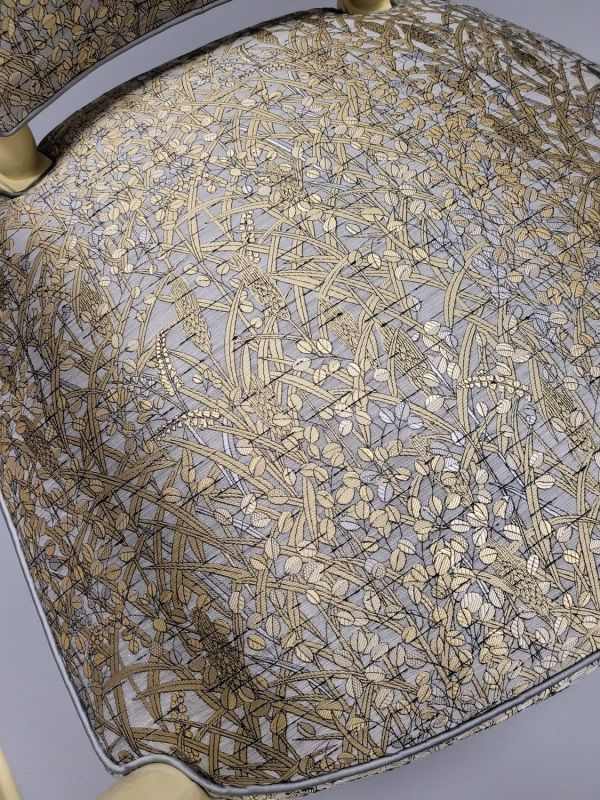 Créé en 1936 pour le salon de réception du ministère de l'Agriculture, au sein d'un ensemble composé d'un tapis (GMT 21423), huit fauteuils (GMT 21424), deux lits de repos (GMT 21425), un buffet bas (GME 13613) et une table basse (GME 13614). Cet ensemble, première commande officielle passée à André Arbus, à l'initiative du ministre Georges Monnet (1898-1980), est entré dans les collections du Mobilier national par un versement du ministère de l'Agriculture le 29 novembre 1963 (s'y ajoute une table basse, GME 17376, versée en 1997).