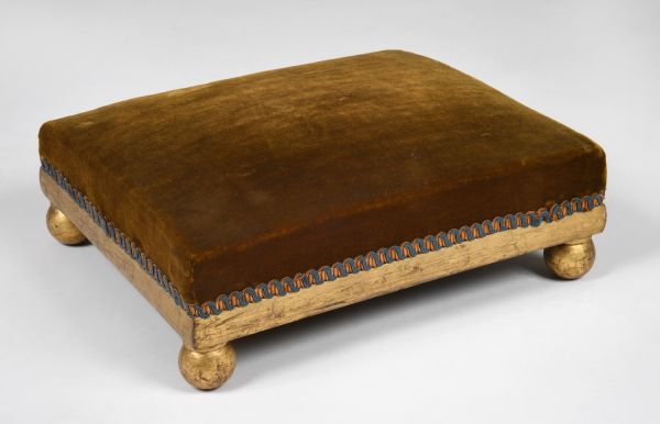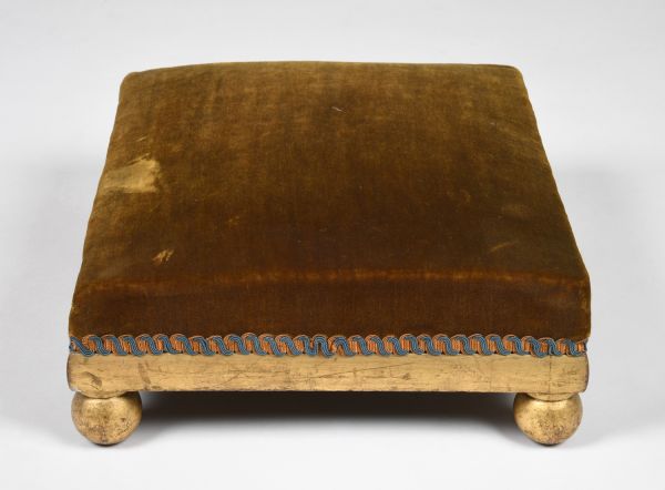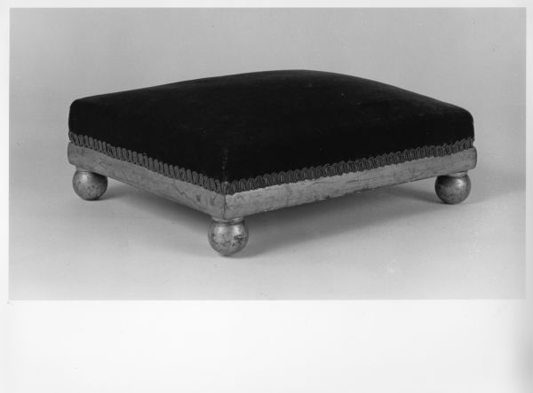 Décrit en 1833 au palais des Tuileries, dans le salon de famille (AN, AJ/19/169, n° 1397) - l'ensemble mobilier comprend un canapé (n° 1390), deux demi-canapés (n° 1391), deux fauteuils à accotoirs à volute (n° 1392), quatre fauteuils à pieds à balustre (n° 1393), quatre fauteuils à pieds étrusques (n° 1394), huit chaises (n° 1395), deux tabourets de pieds à pieds à griffes (n° 1396), deux tabourets de pieds à pieds en boule (n° 1397), un écran de cheminée (n° 1398) et vingt chaises anglaises (n° 1399) ; en 1855, dans le cabinet de travail de l'appartement de l'impératrice Eugénie (AN, AJ/19/1099, f° 136 v°, n° 695) - l'ensemble mobilier comprend quatre fauteuils confortables (n° 693), quatre chaises (n° 694), deux tabourets de pied (n° 695), un écran de cheminée (n° 696) et six chaises légères (n° 697). Rentré au Garde-meuble, le 21 août 1867 (Arch. Mob. nat., M242, f° 252 v°, n° 41379).