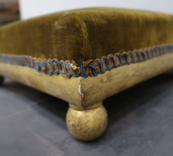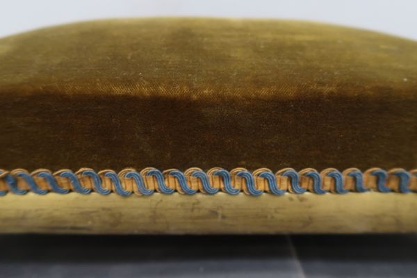 Quatre pieds sphère, listel en bague au sommet. Ceinture étroite rectangulaire, en dos d'âne, unie. Siège à épaisseur, sans ressorts.