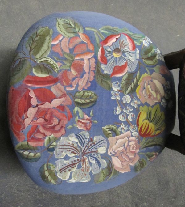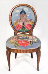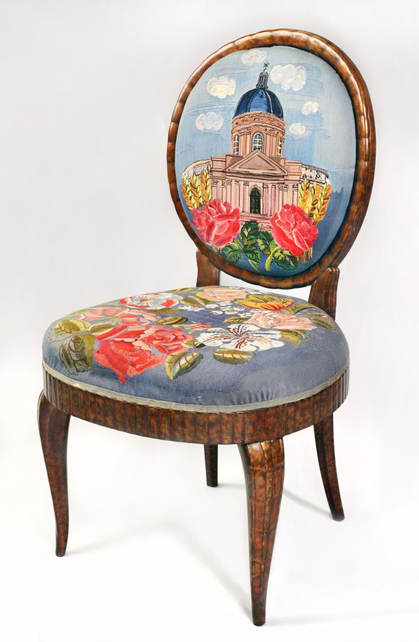 Fond bleu à roses rouges au siège et paysage de Paris au dossier : l'Institut.