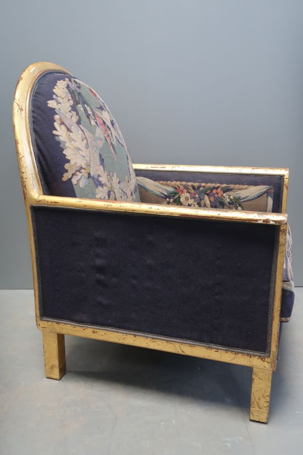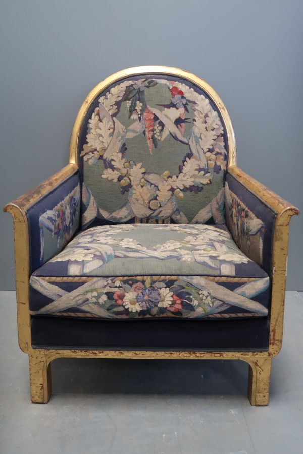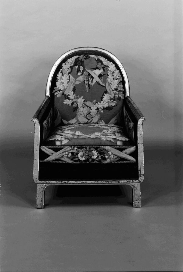 Bois acquis auprès de la maison Tardif et Bruyer (Paris, 29 rue Bayen), au sein d'un ensemble comprenant un canapé (GMT 24719) et six bergères (GMT 24720) sur le thème des "Fleurs de France", quatre tapisseries sur le thème des "Fleuves de France" (GOB 762 et 763, 779 et 780) et un tapis (GOB 1466), tous dessinés par G.-L. Jaulmes entre 1927 et 1932 dans le cadre du projet de construction de l'ambassade de France à Washington.