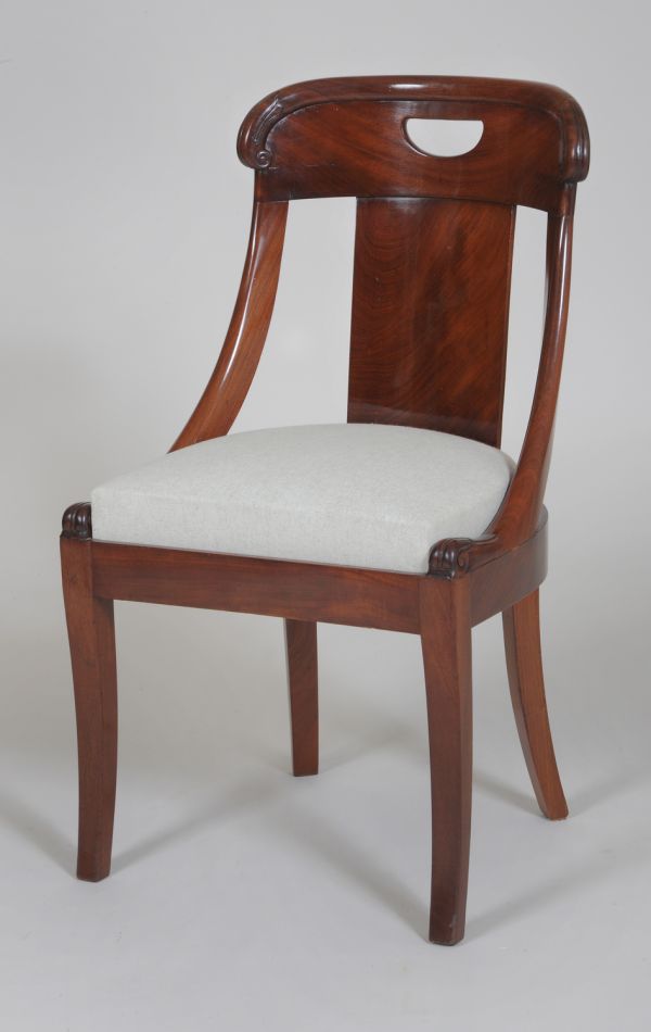 Chaise gondole en bois d'acajou.