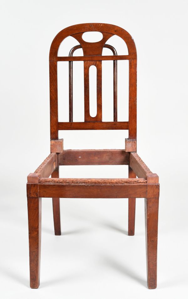 Dossier dégagé et ajouré. Traverses supérieure du dossier semi-circulaire.