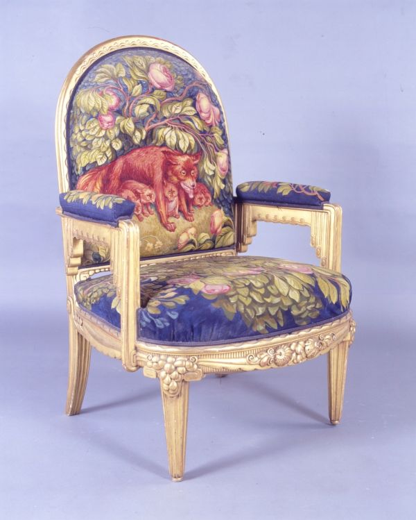 Du meuble n° 23bis de la manufacture de Beauvais, "Les Animaux de la forêt", tissé entre 1920 et 1922 d'après des cartons de Jean Veber commandés à l'artiste par Jean Ajalbert en janvier 1920. L'ensemble fut monté sur des bois de Lucien Michon. Il comprenait deux chaises (GMT 30526) et deux fauteuils (GMT 30527). Deux garnitures de chaises furent tissées en supplément par les élèves de la manufacture (Beauvais 1201, Beauvais 1217, Beauvais 1235, Beauvais 1236). L'ensemble fut déposé en 1934 à la préfecture de police de Paris.