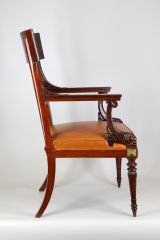 Fauteuil en bois d'acajou et cuivre doré, estampillé "G. Iacob".