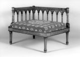 Deux dossiers, un postérieur et un latéral, ajourés en arcatures ogivales. Montants des dossiers en petites colonnes cannelées sous des ogives et sur une base à filets d'amarante.