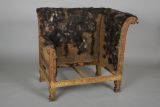 Bois sculpté et doré et garniture en crin et avec sangles.