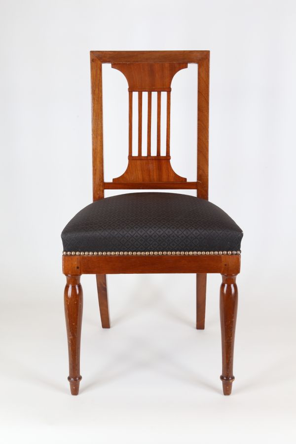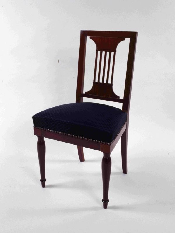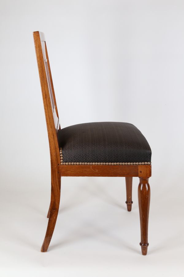 Chaise ajourée à dossier en grille à cinq barres de type 1E, d'époque Empire, en bois d'acajou verni.